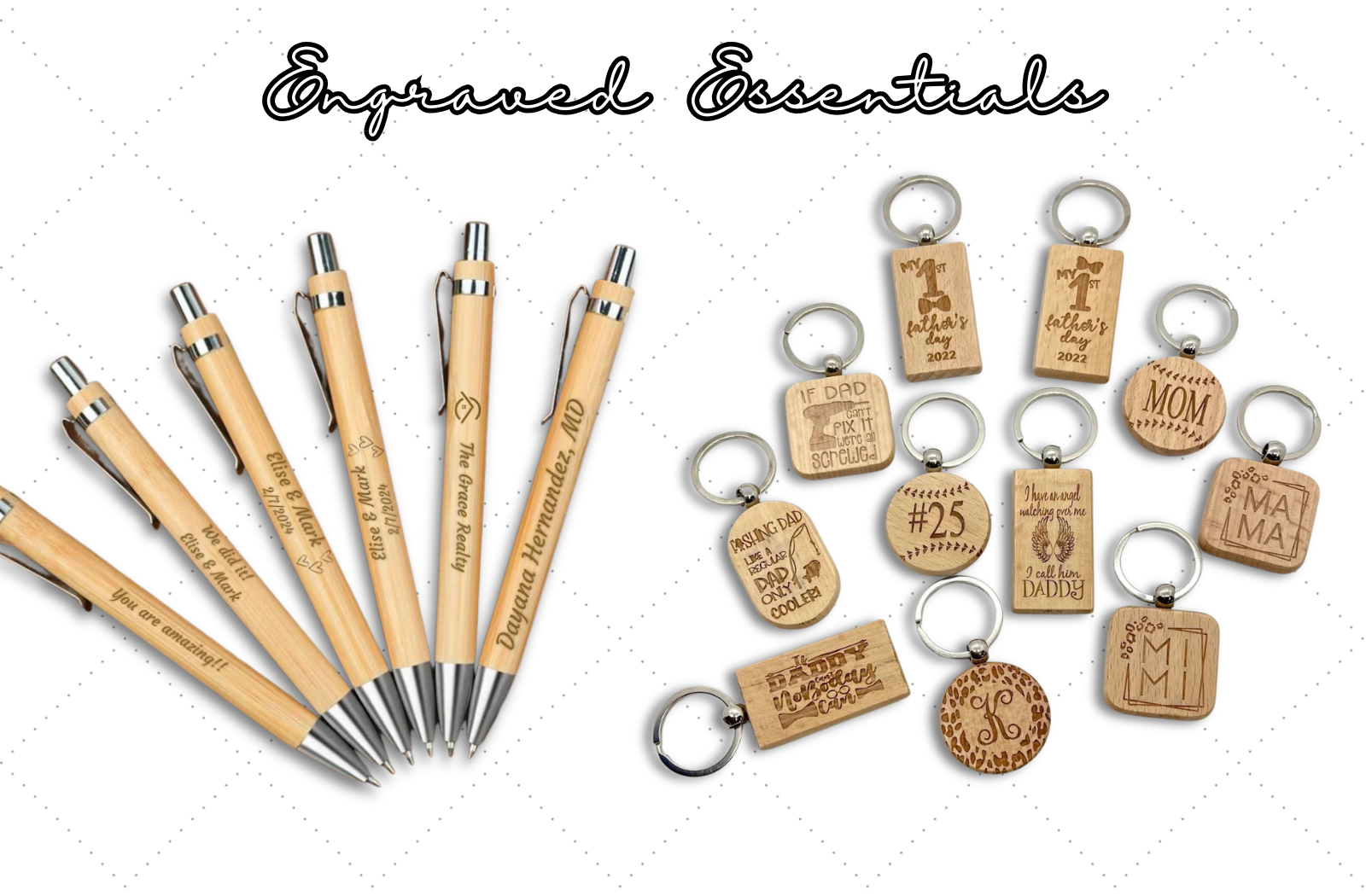 Discover our collection of engraved wooden items, each piece crafted with care and personalization